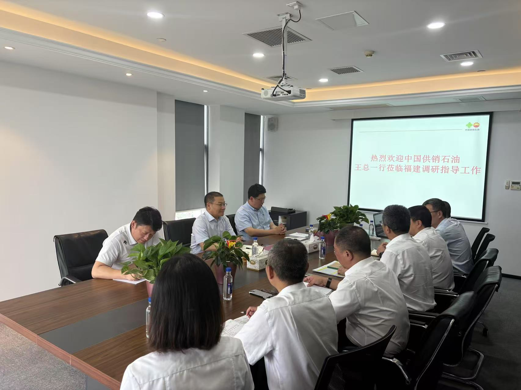 2025年5月8日,中国供销石油总经理王之君到福建公司调研指导工作,福建公司王河根陪同调研。