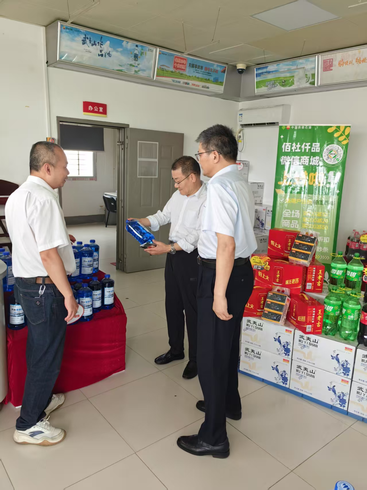 随后王总重点了解自有品牌“佰社仟品”商品的推广情况,对福建公司在“佰社仟品”的宣传,特别是柴油尾气处理液及汽车玻璃水的销售给予了充分肯定。