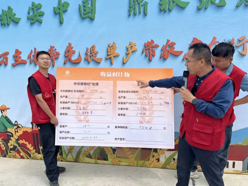 “中农鼎粮柱”是中农立华推出的由杀菌剂和植物营养调节剂组成的作物健康解决方案,通过“防病壮苗——抗逆提质——增产减损”全周期管理,可有效提升粮食产量和品质,上市三年多来,已在全国推广超850万亩次。